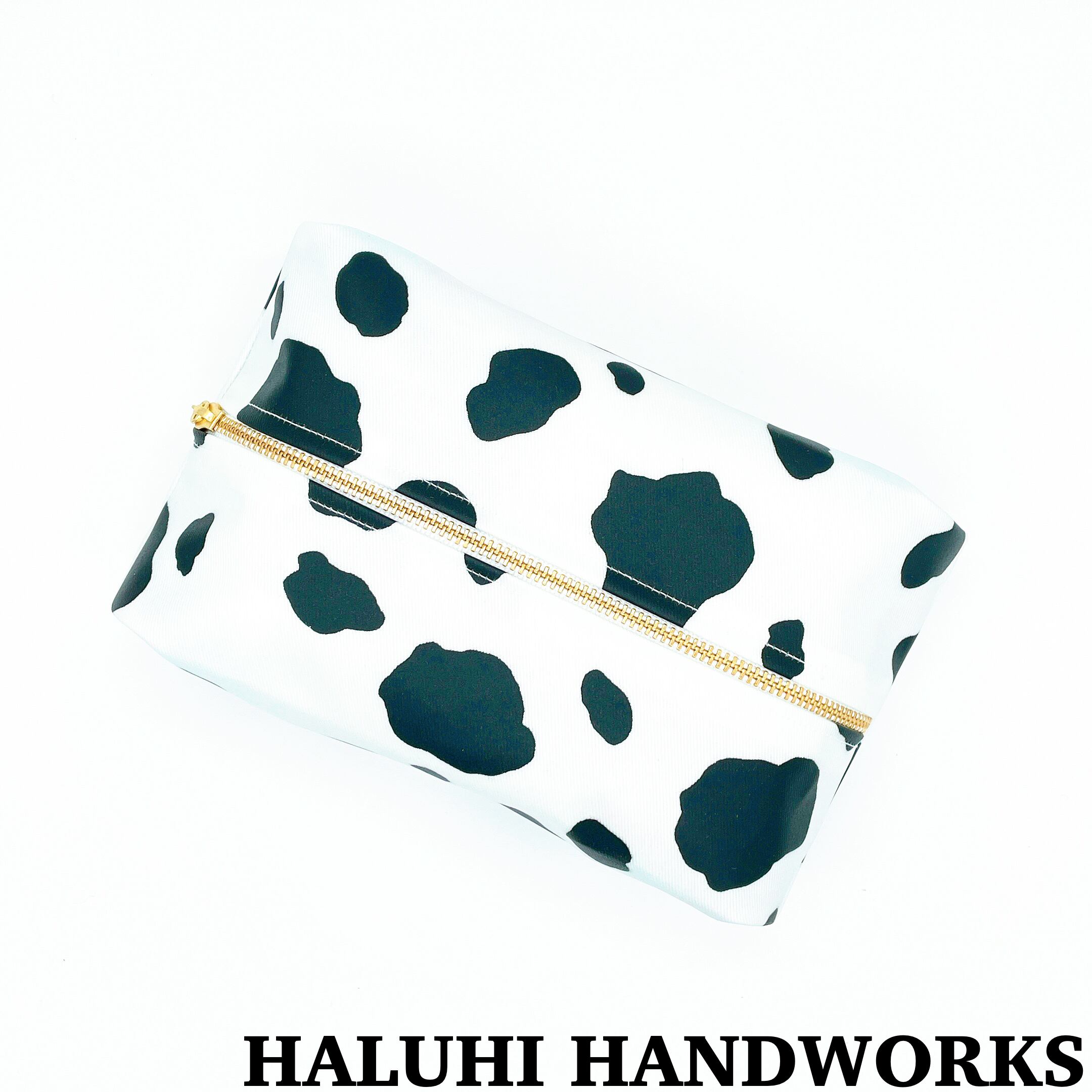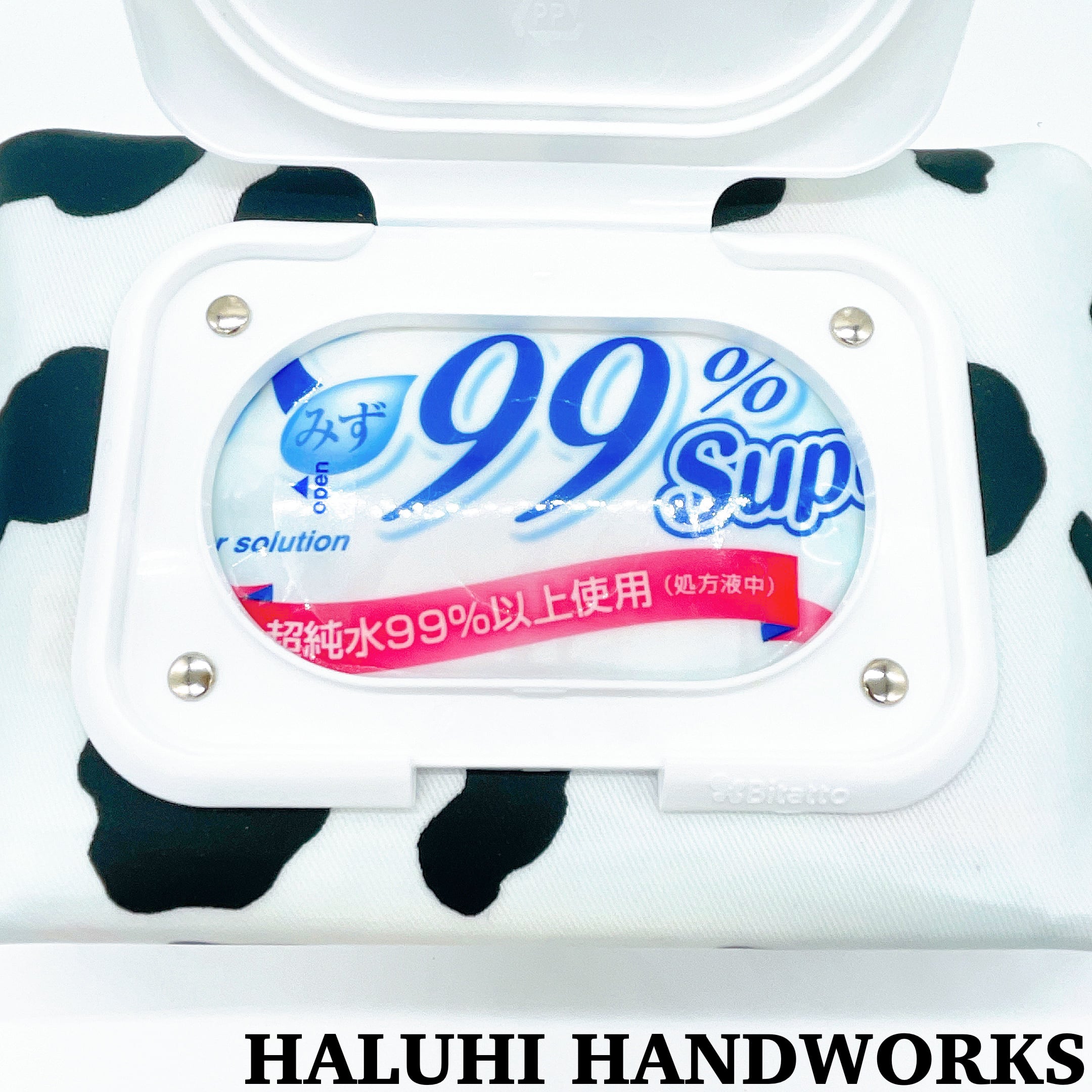 牛柄、ホルスタイン柄、ダルメシアン柄のラミネート生地で作ったおしりふきポーチになります。