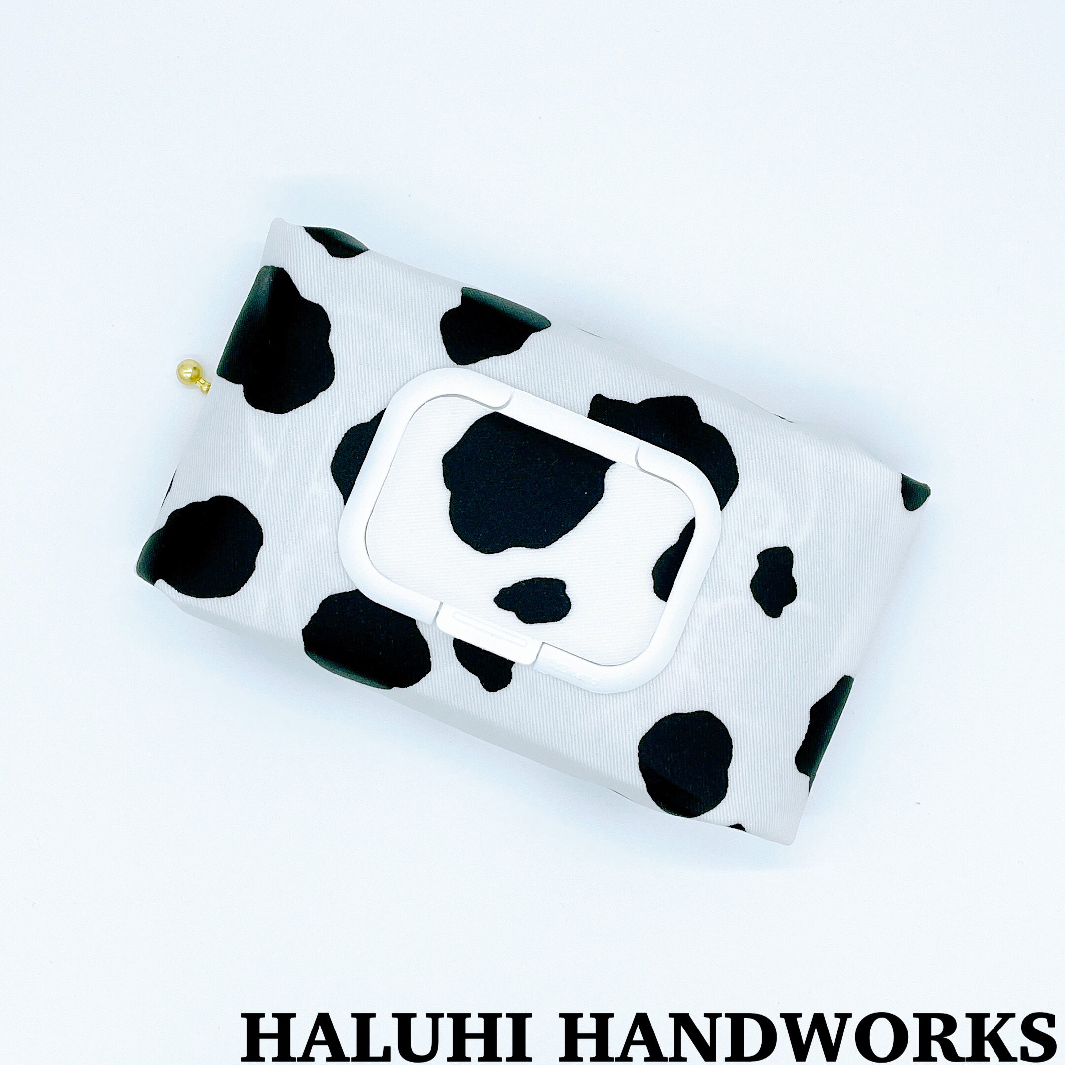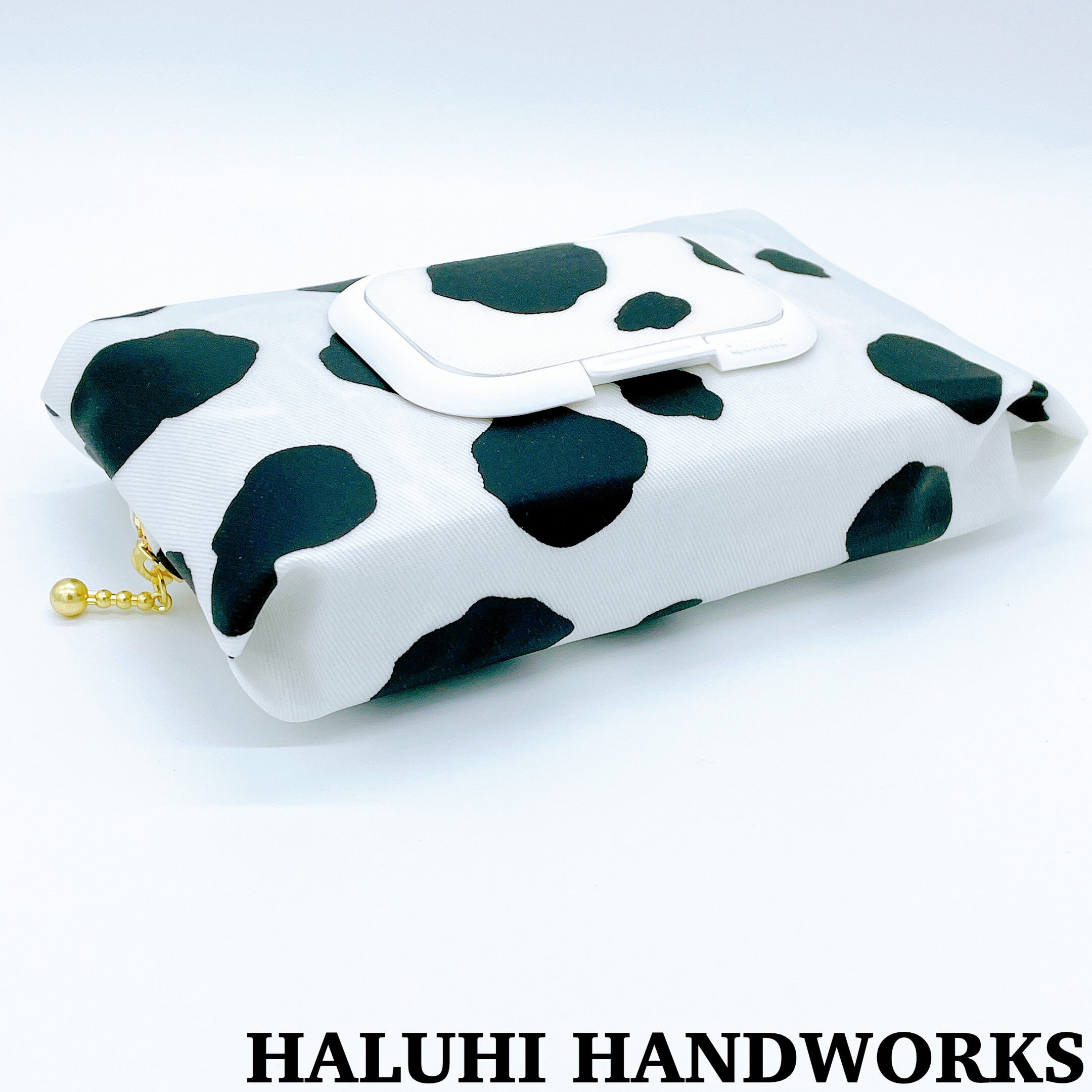 牛柄 ダルメシアンのラミネート生地で作ったウェットティッシュ、除菌シートを入れるシルコットポーチになります。