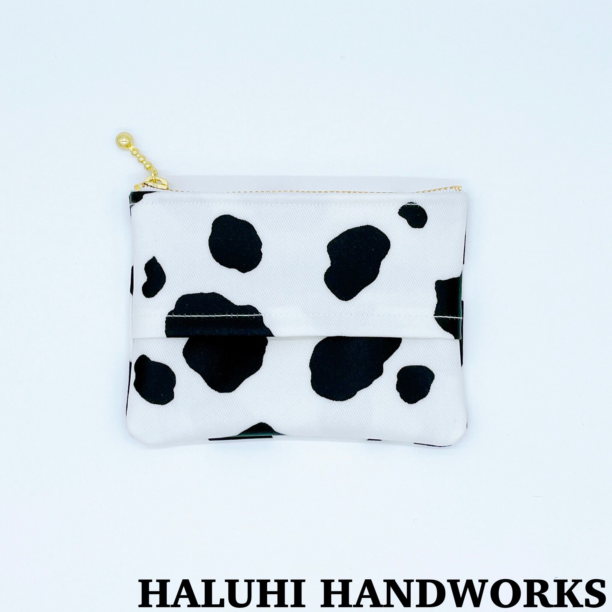 牛柄(ホルスタイン柄・ダルメシアン柄)がかわいい、ラミネート生地のポケットティッシュポーチです。