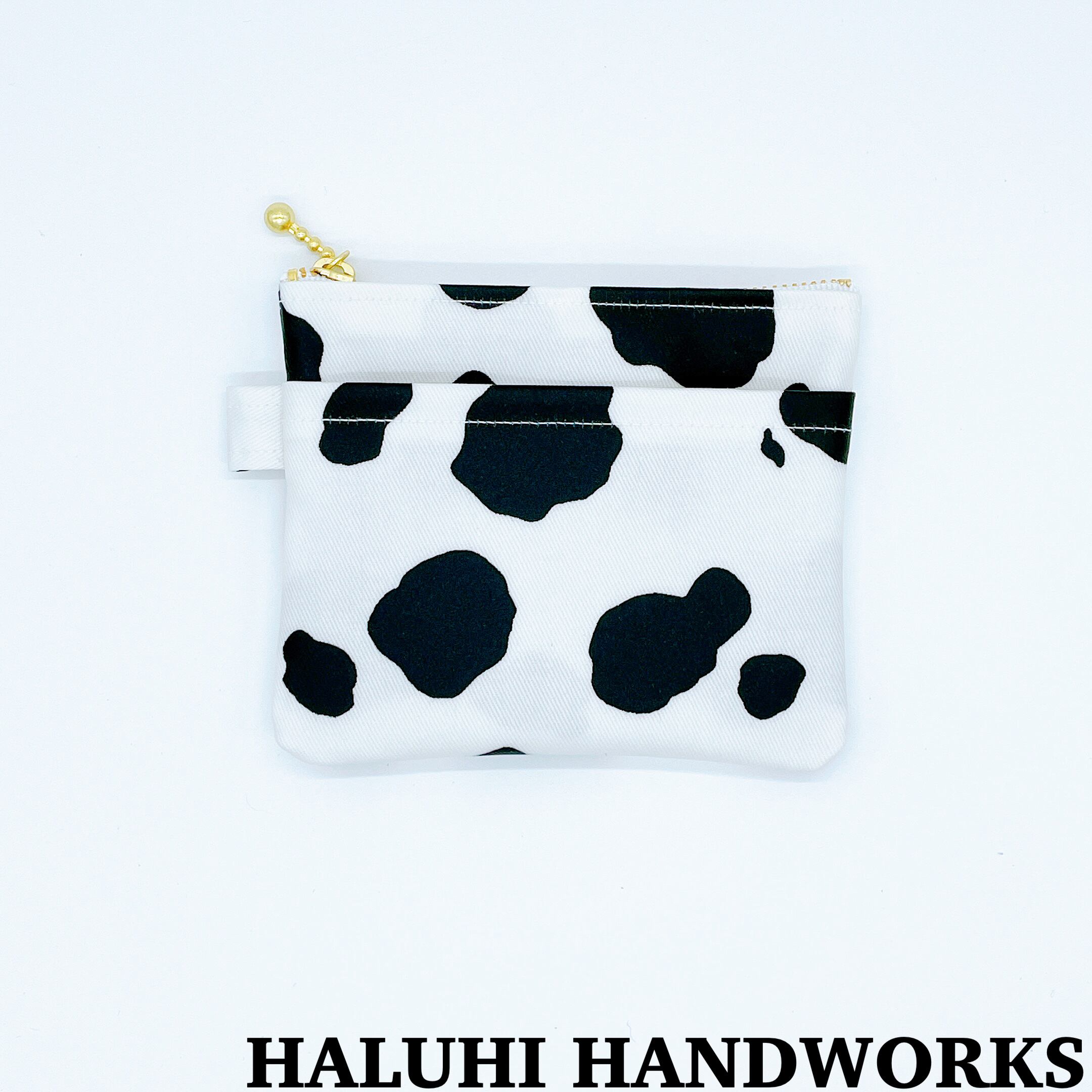牛柄、ホルスタイン柄、ダルメシアン柄のラミネート生地で作った小物入れポーチになります。