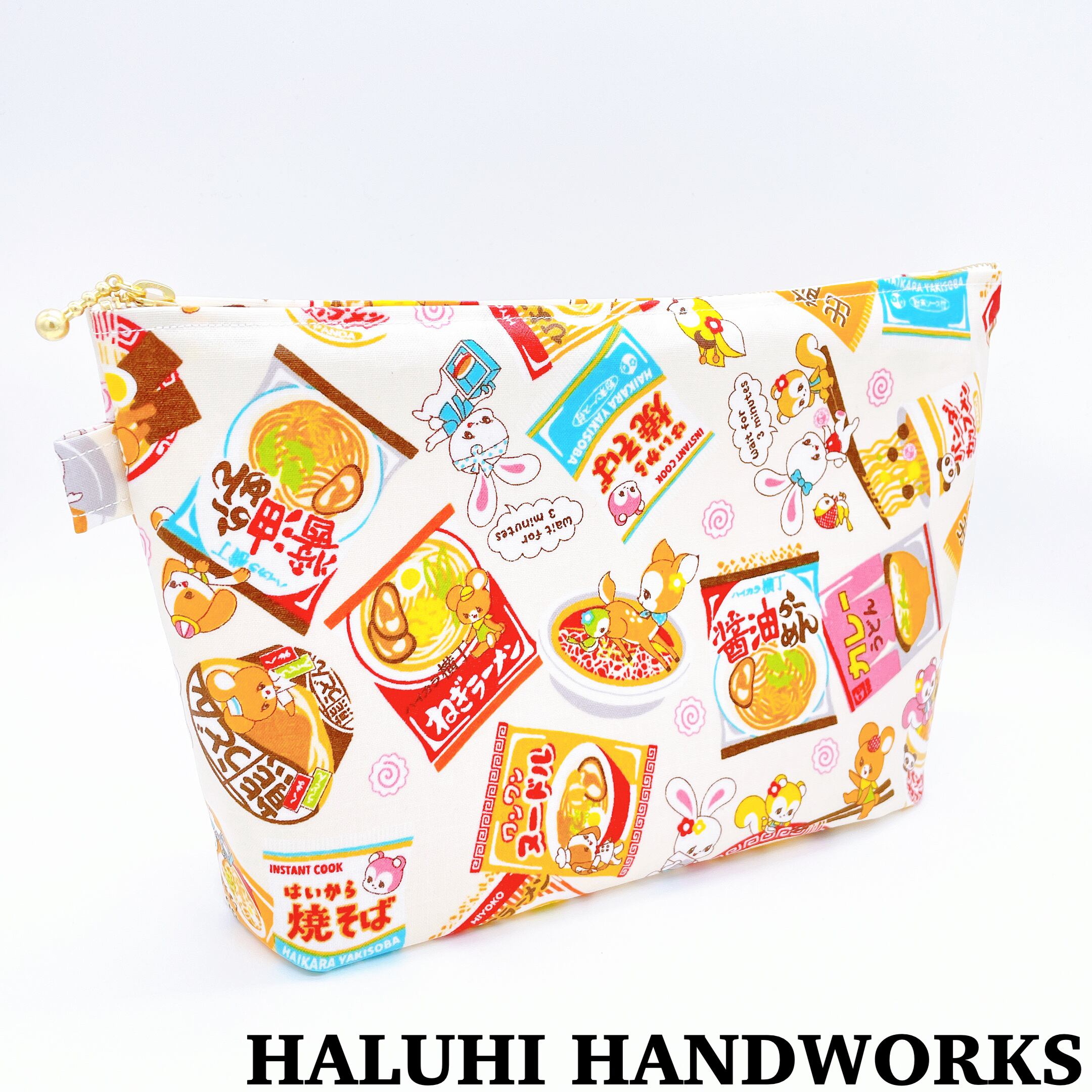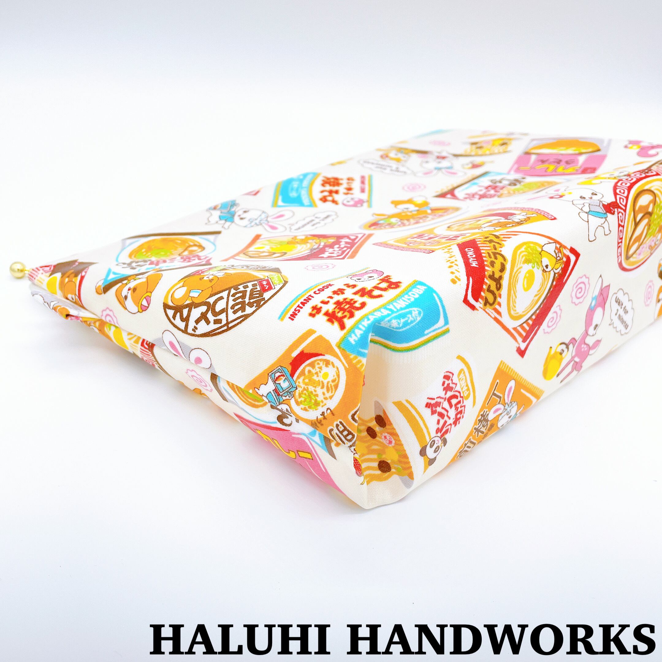 可愛くて、楽しくて、美味しそうな、はいから横丁のラミネート生地で作った折りマチポーチになります。