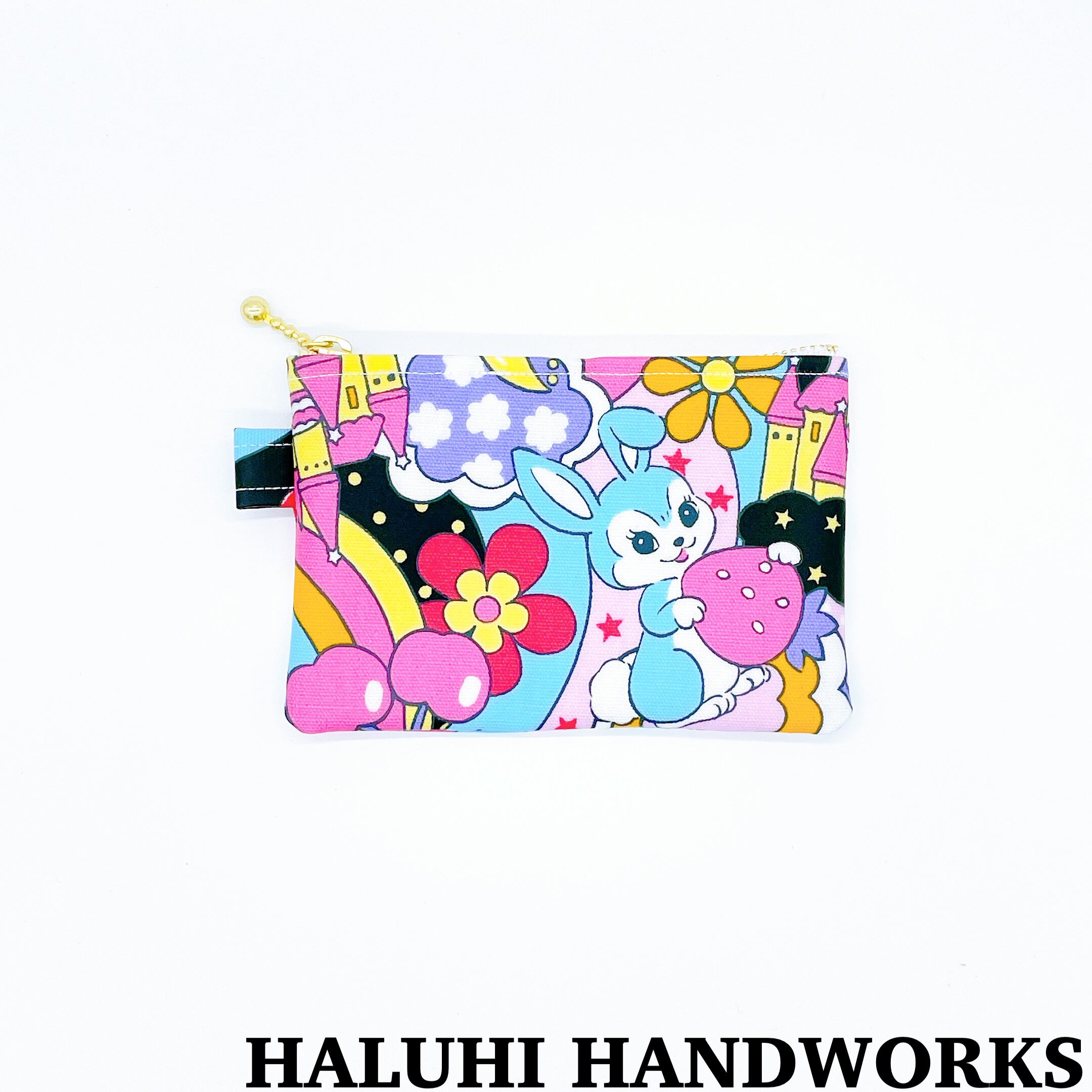 ファンシーアニマルのラミネート生地で作った、ミニポーチになります。