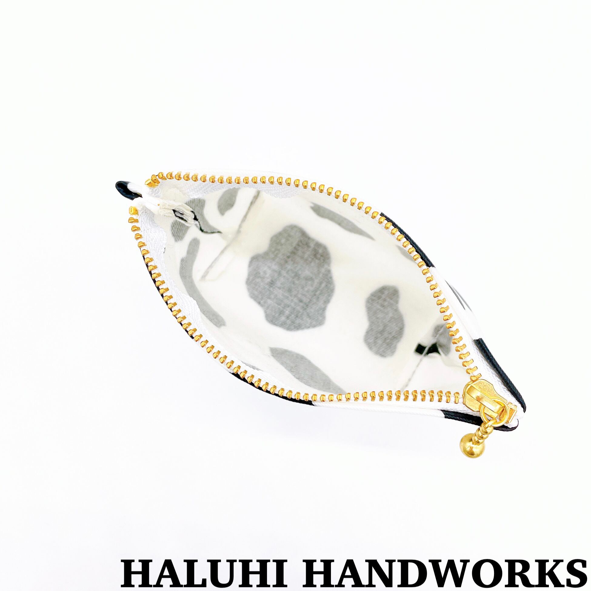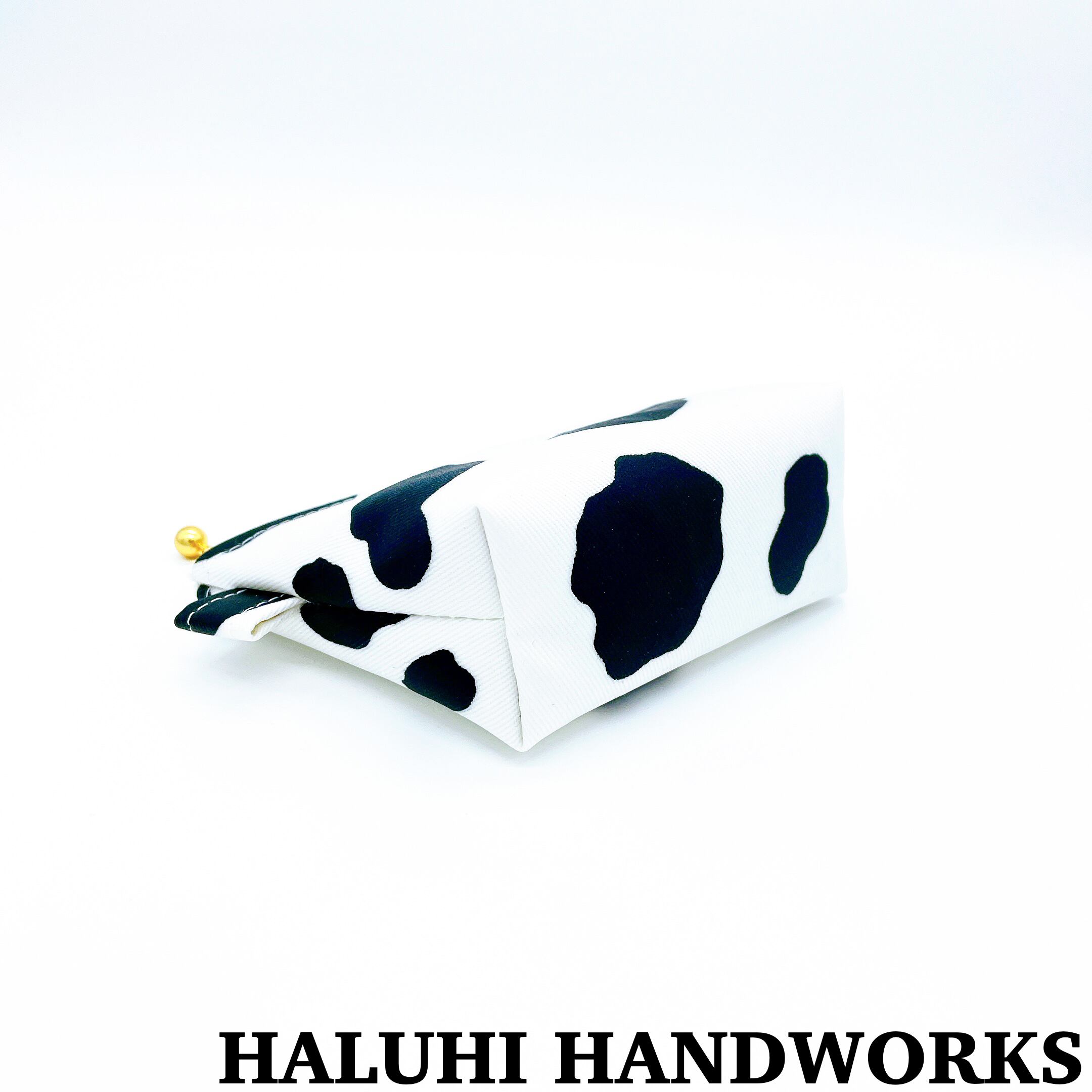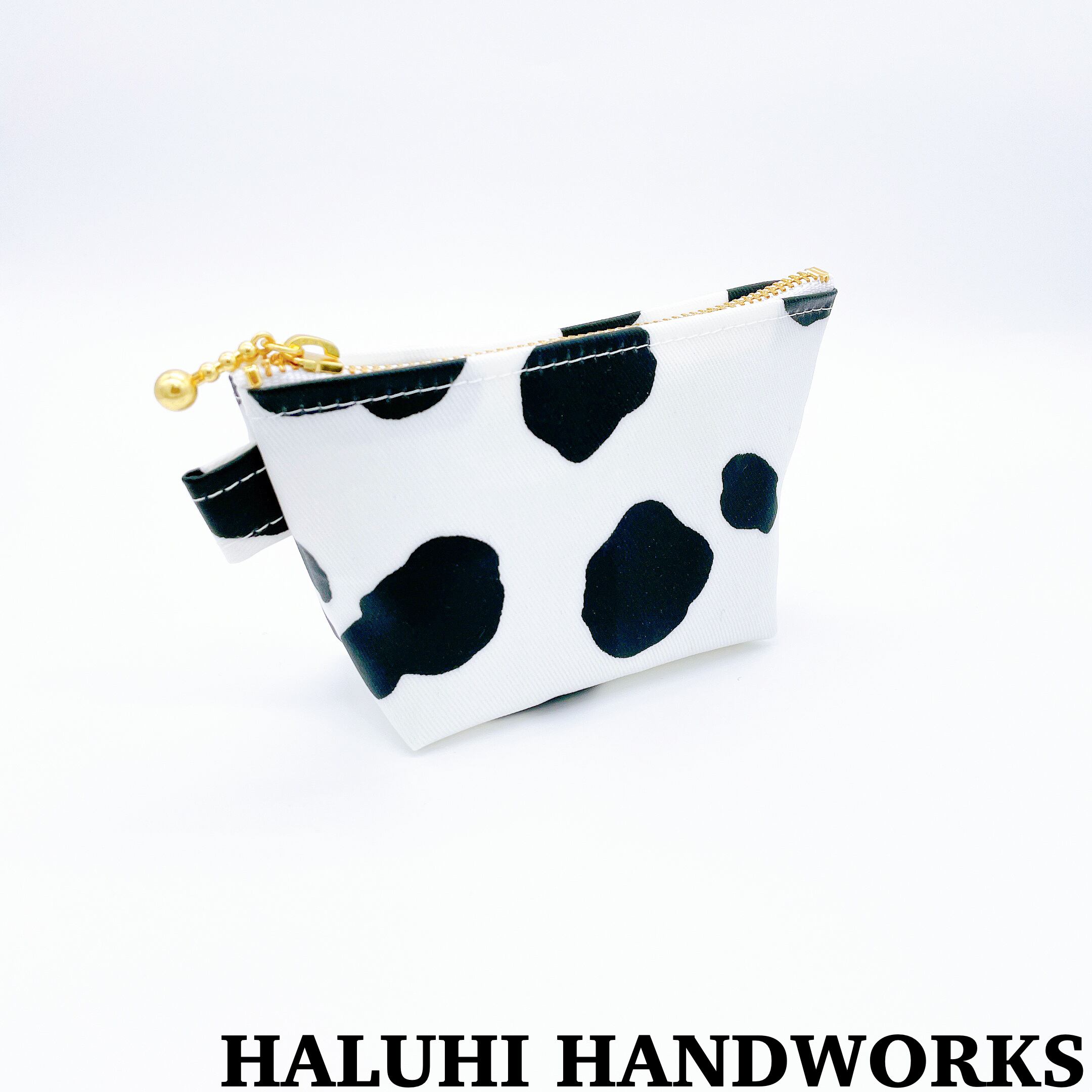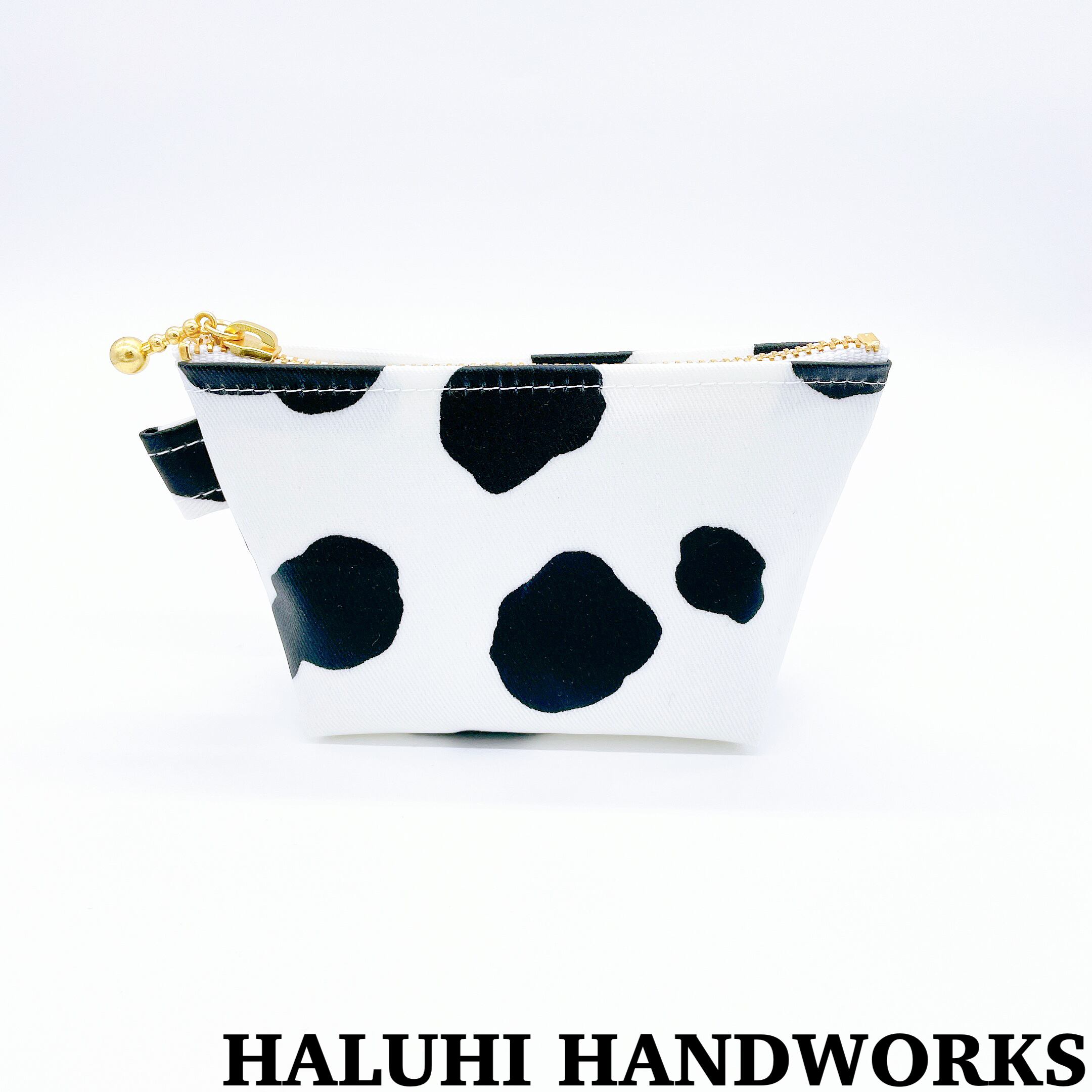 人気の牛柄ラミネート生地で作った台形ポーチになります☻