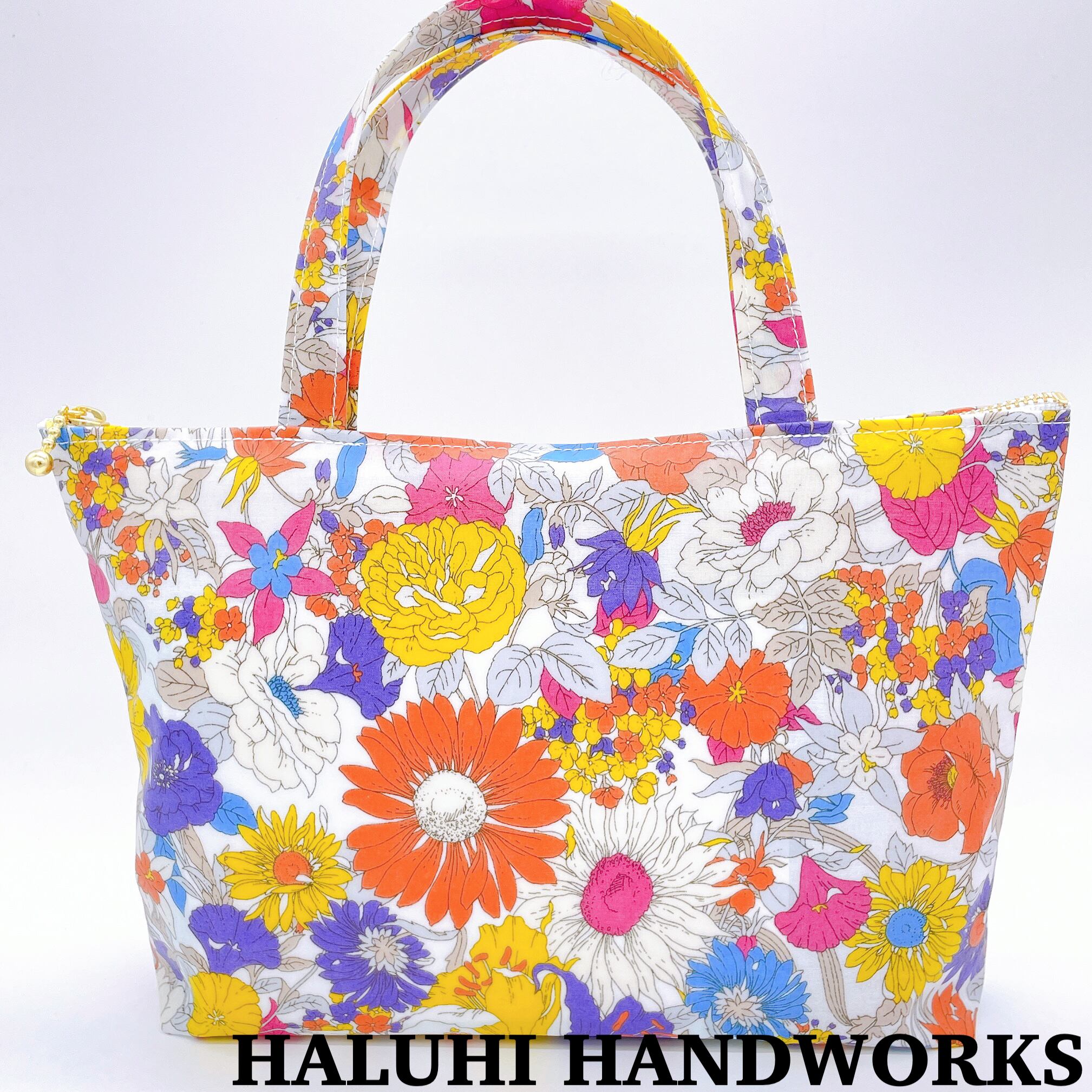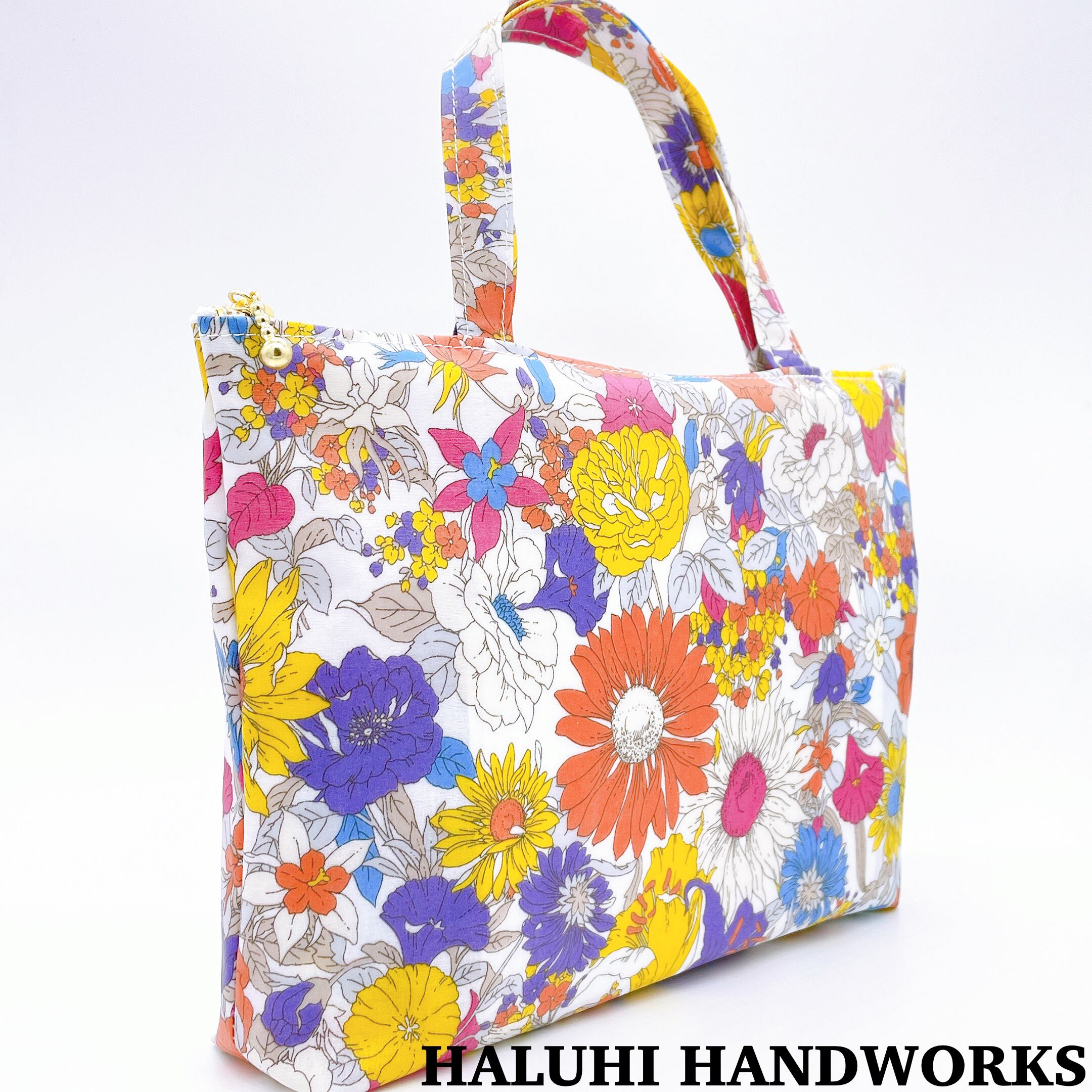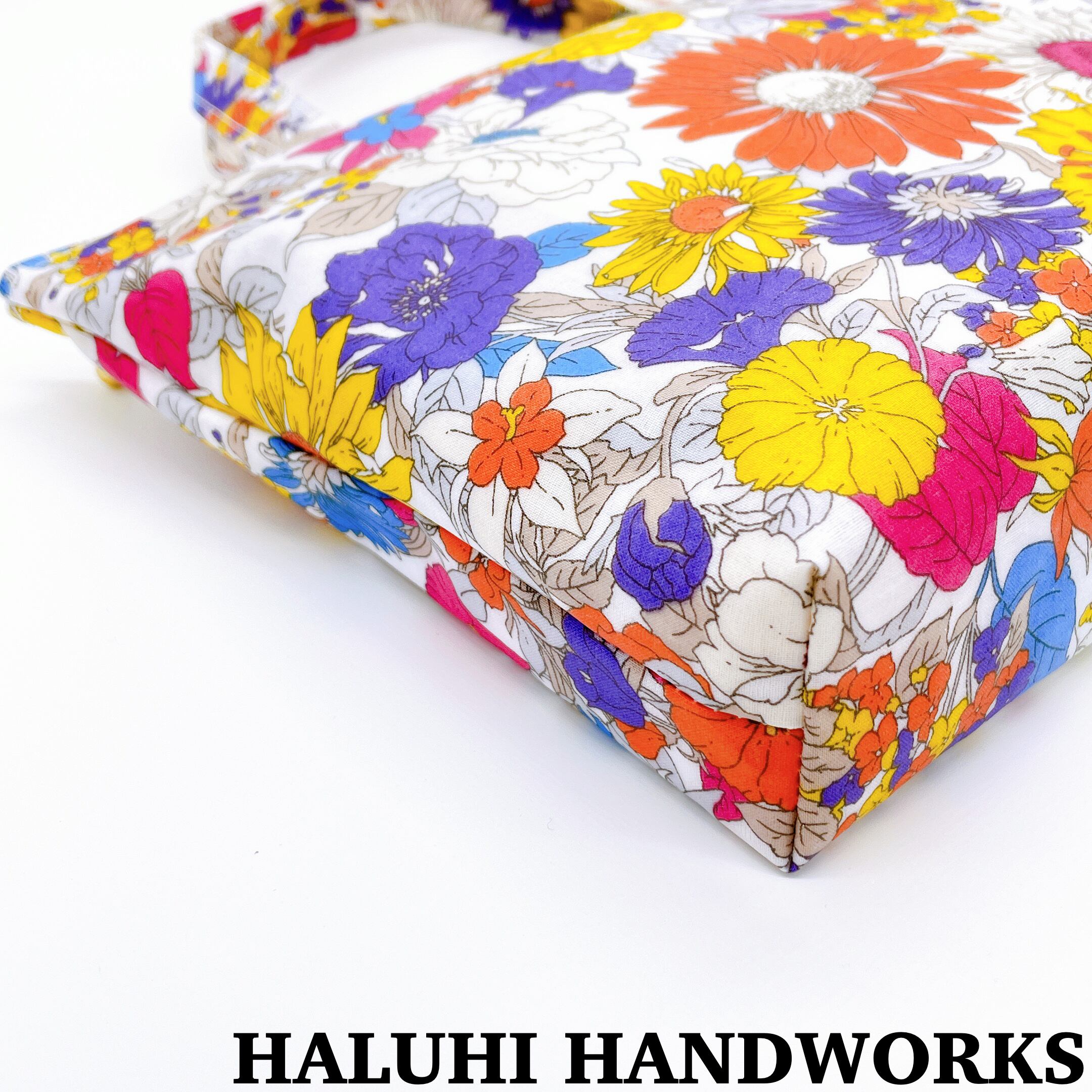 アートフラワーのラミネート生地で作ったトートバッグになります。