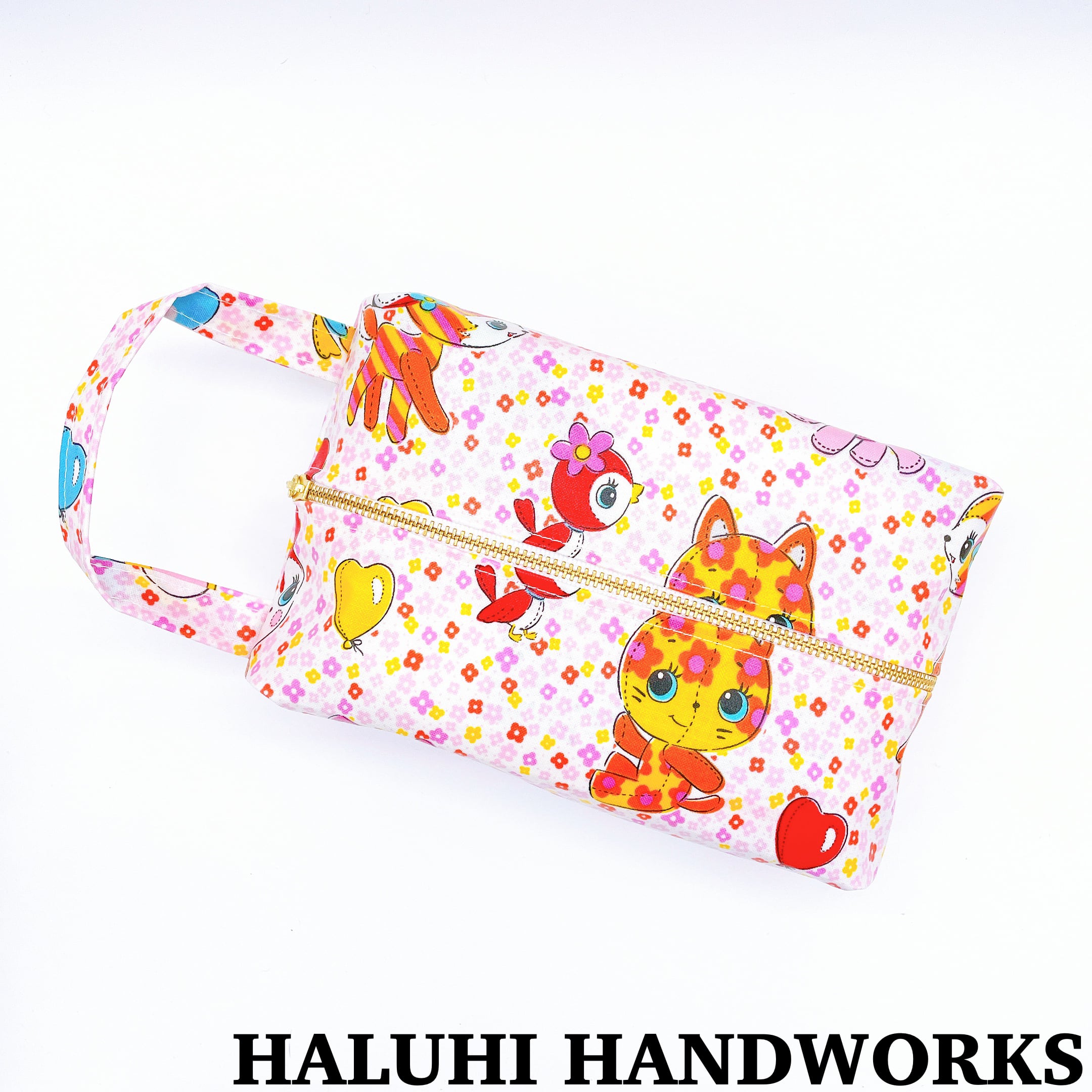 大人気シリーズ、ハニーチューンの新作生地で作ったドーリーチューンラミネート生地のおしりふきポーチ(持ち手付き)です◡̈♥︎