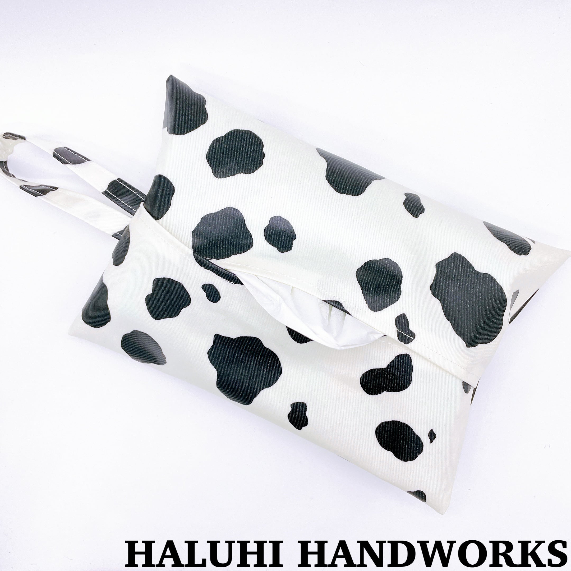 牛柄のラミネート生地で作った、エコティッシュカバーになります。